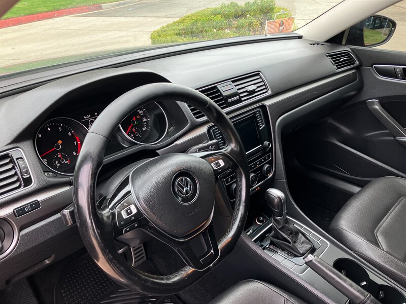 Standard features include a rearview camera for enhanced visibility, a 6.3-inch touchscreen infotainment system with Bluetooth connectivity, and a four-speaker audio system. The Passat also comes equipped with automatic headlights, keyless entry, and a comfortable cloth seating arrangement. Safety is prioritized with features such as stability control, multiple airbags, and a tire pressure monitoring system. This vehicle offers a blend of performance and practicality, making it a great choice for daily driving.
